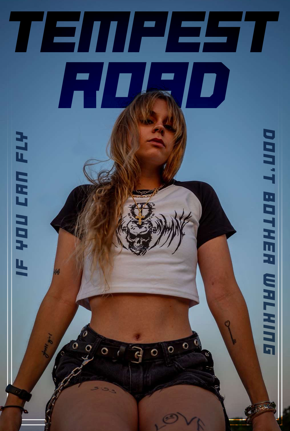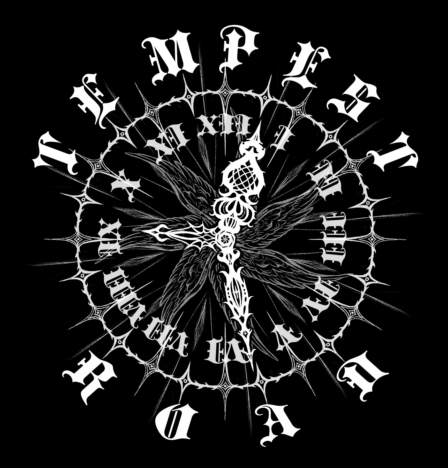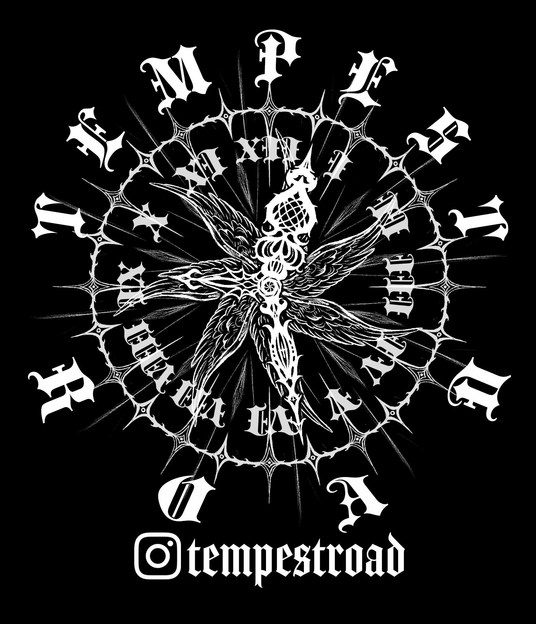 Below is a sample of one of the designs I have already created, as well as the early iterations of TEMPEST ROAD's main logo.